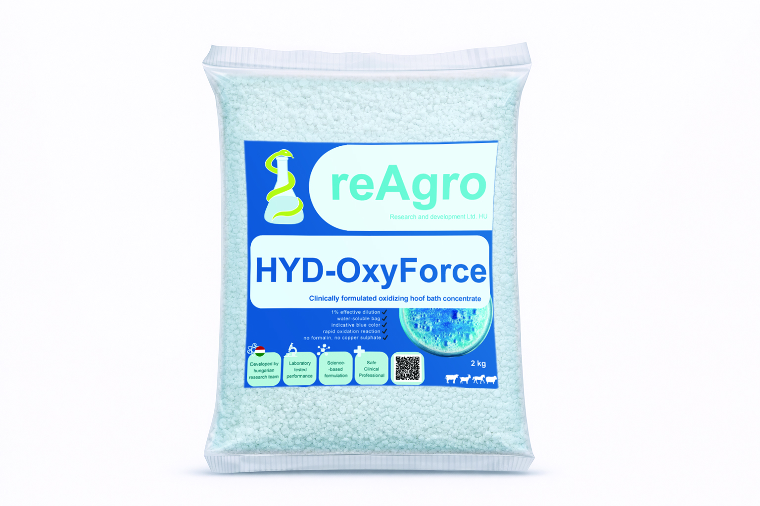 A HYD-OXYFORCE a reAgro, oxidatív hatásmechanizmusú és cink-szulfátot tartalmazó patafürdető koncentrátuma, amely támogatja a lábvég megfelelő higiéniai állapotának fenntartását intenzív állattartó rendszerekben.