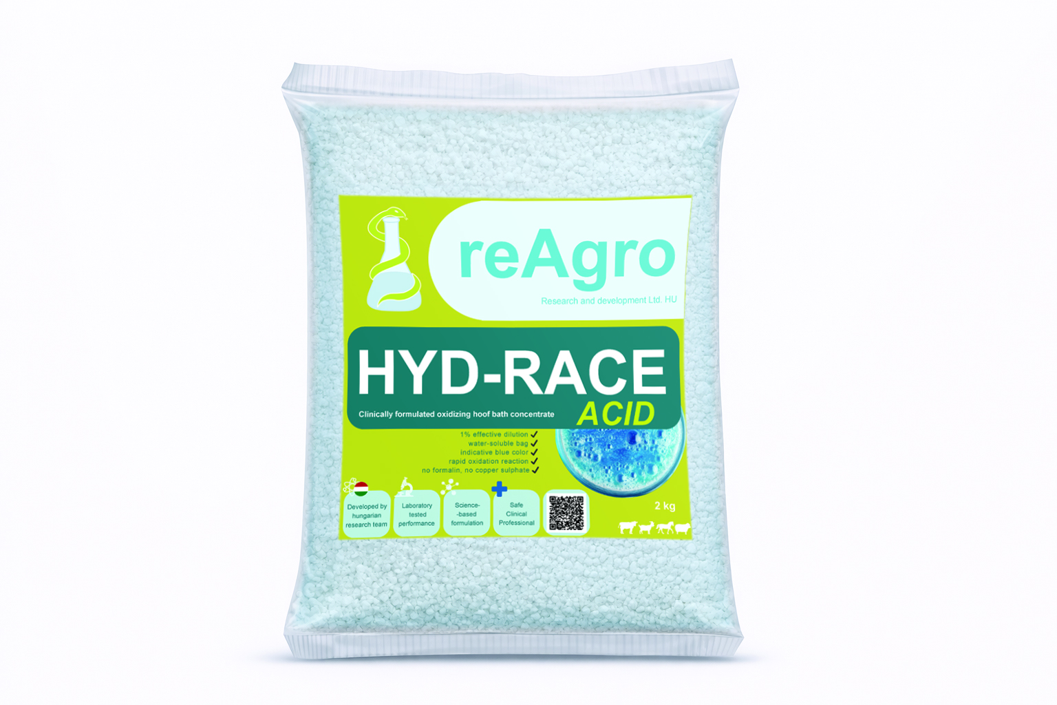A HYD-RACE Acid a reAgro, savas kémhatású, por alapú patafürösztő koncentrátuma, amely a hagyományosan alkalmazott savas rendszerek logikájára épül, modern, környezetbarát formában.