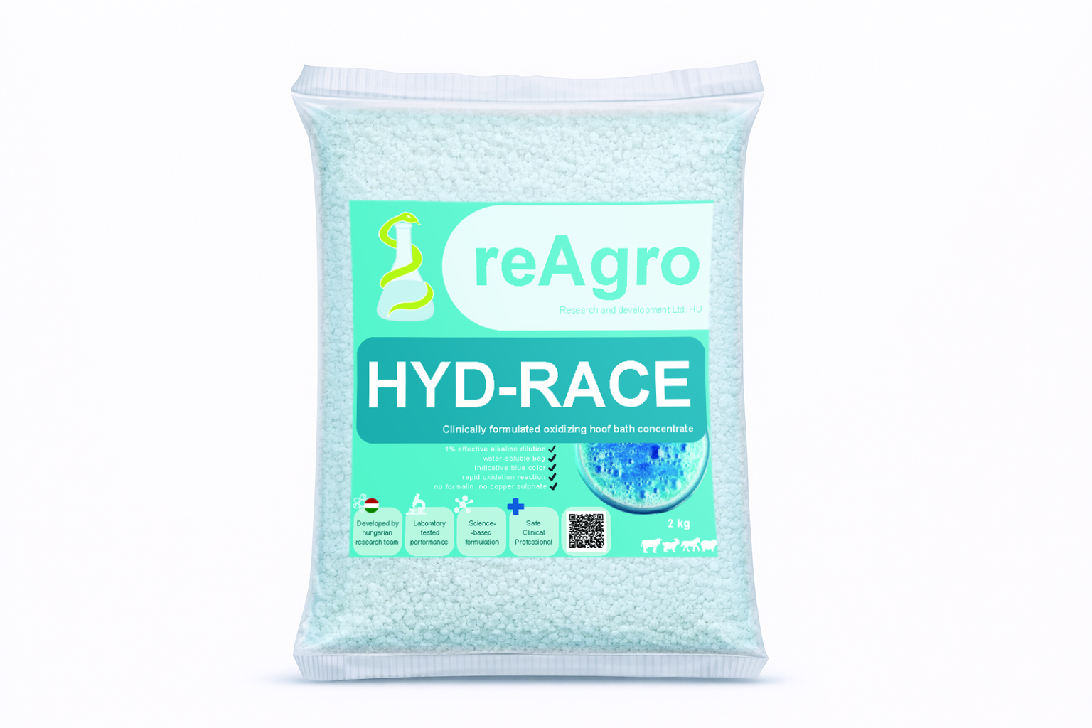 A HYD-RACE a reAgro, hidrogén-peroxid és perecetsav alapú por állagú patafürdető koncentrátuma, amely gyorsan hat, hosszan véd, és teljes mértékben környezetbarát. Megbízható megoldás lábvég betegségek megelőzésére és kezelésére, rendszeres használatra tervezve.