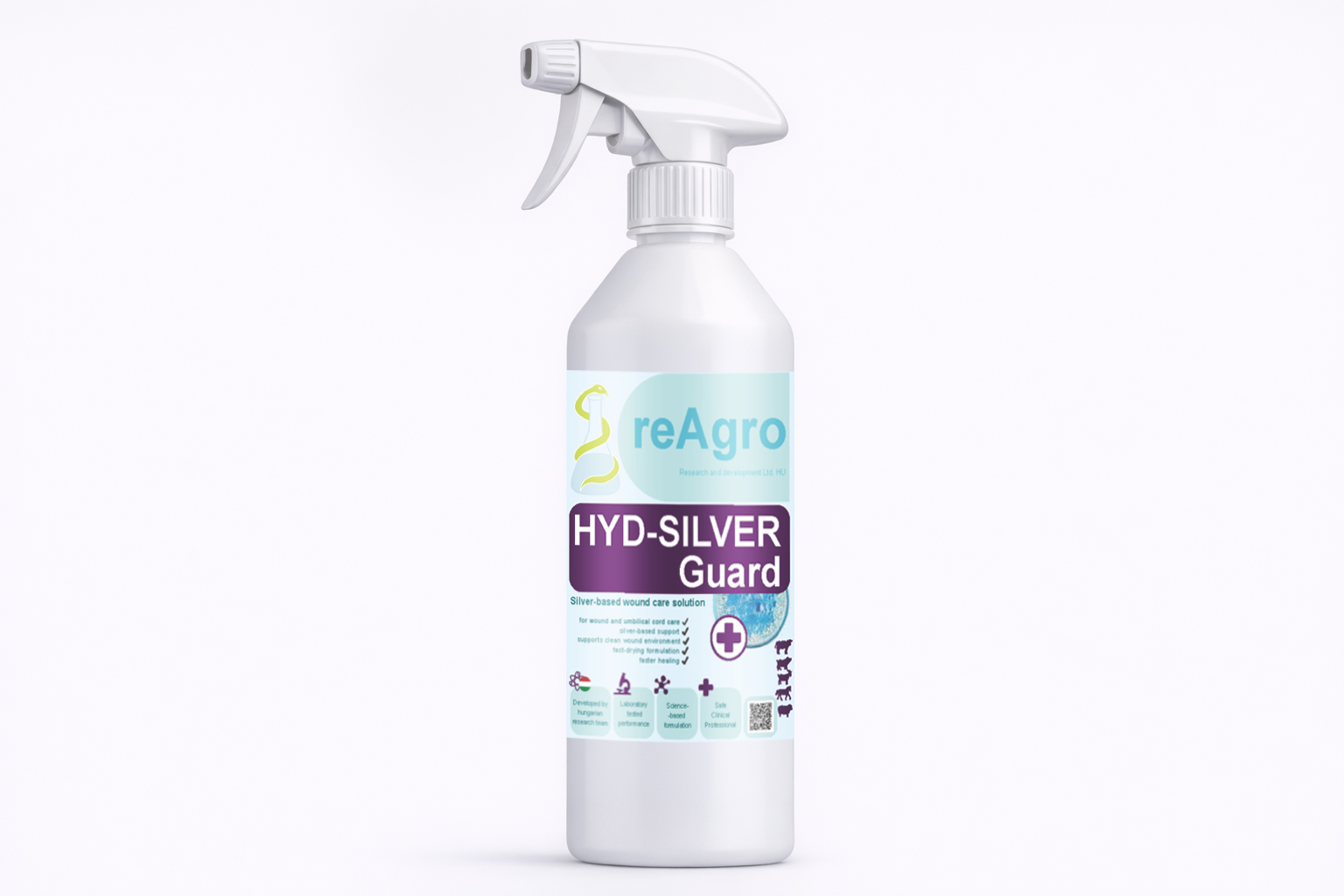 A HYD-SILVER Guard, a reAgro által fejlesztett, ezüstöt és oxidatív komponenseket tartalmazó seb- és köldökcsonk ápoló spray-je, amely támogatja és gyorsítja a regenerációs folyamatokat.